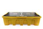 Spillpallet for 2 ibcs - 1200l - yellow - with grid - nestable