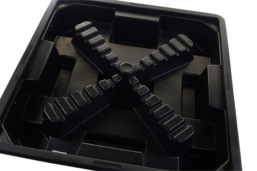- Nestable without grid for economical transport and storage with high profile