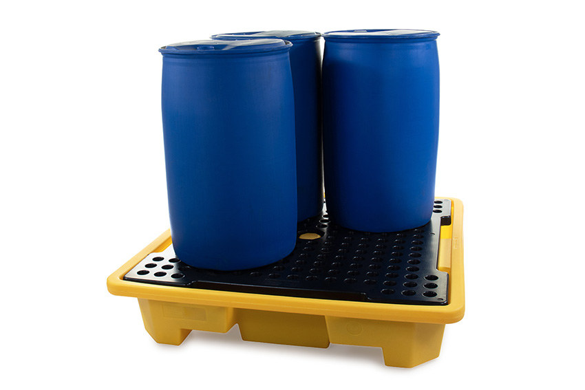 Leak tray with grate - 4 barrels - 249l - 1460x1460x305mm - nestable