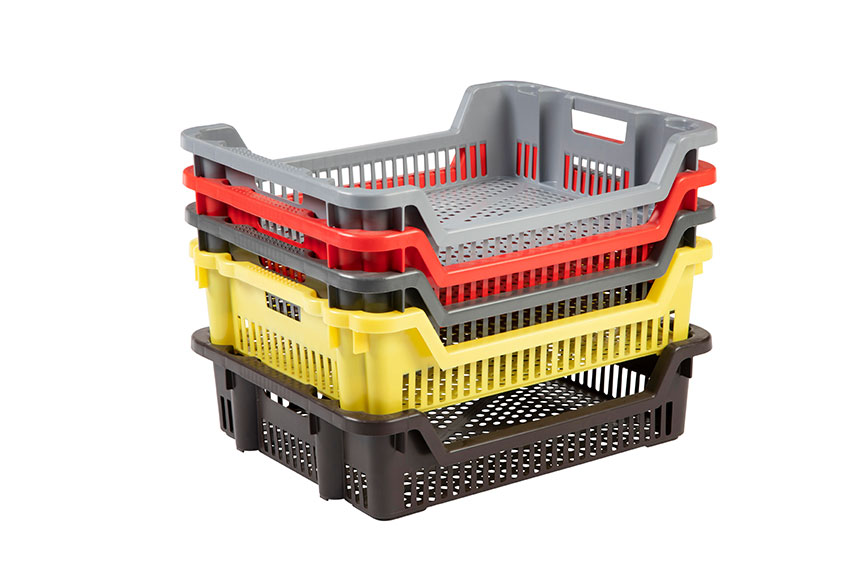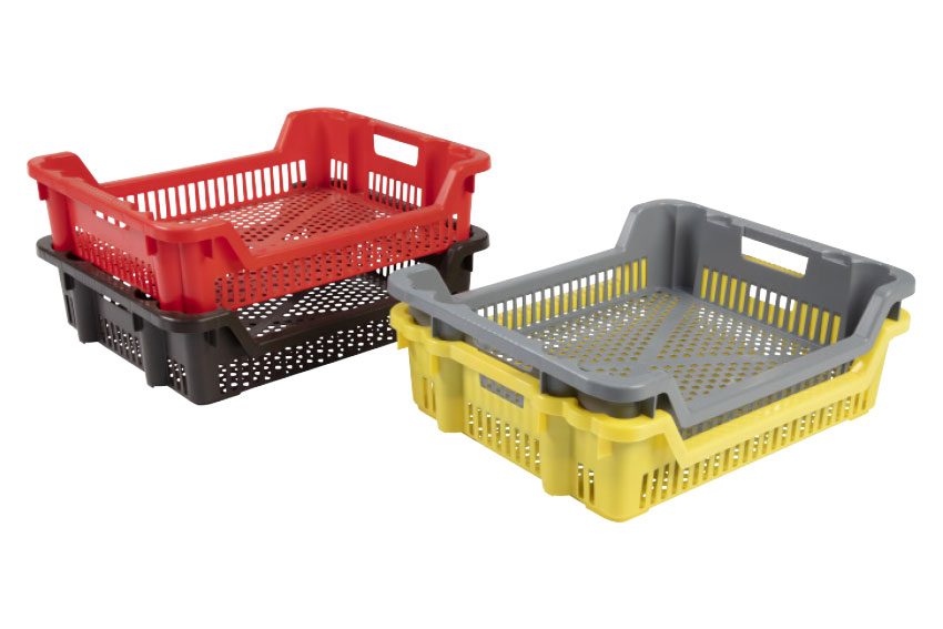 Nestable and stackable crate 33l - 625x500x165/85mm - perforated sides and bottom - 2 open handles