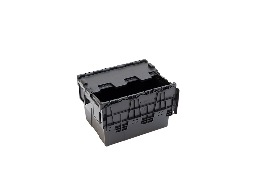 - Unique lid design: folds completely flat next to the container when nested, reducing damage to the container and saving extra space during return transport