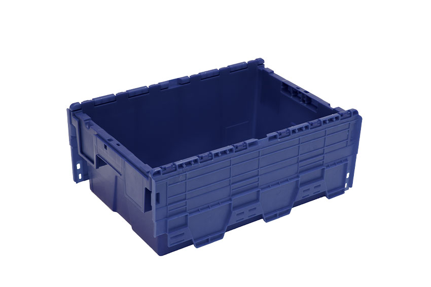 • Unique lid design: folds completely flat next to the container when nested, reducing damage to the container and saving extra space during return transport