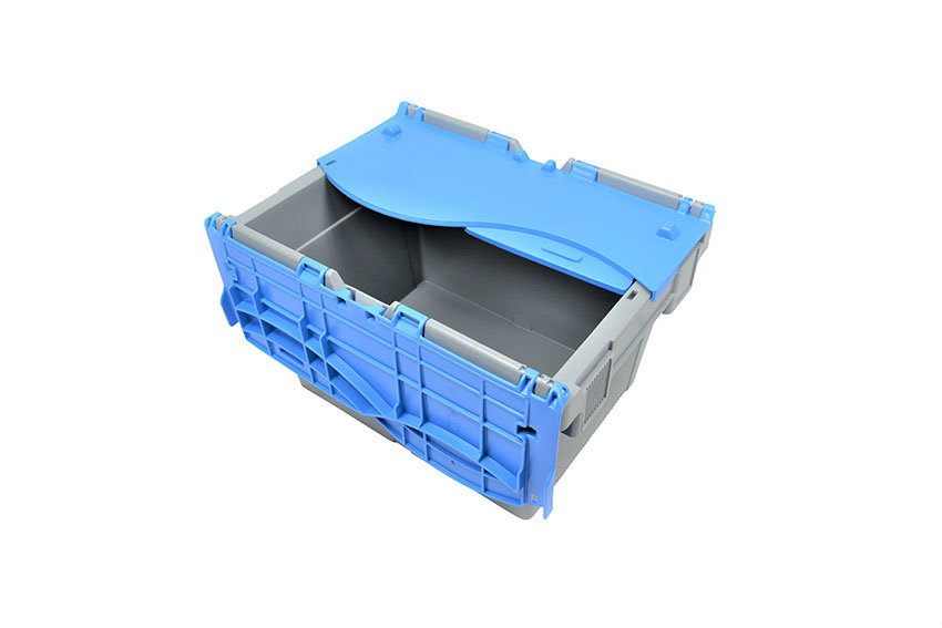 - Robust distribution crate with hinged lid for efficient use