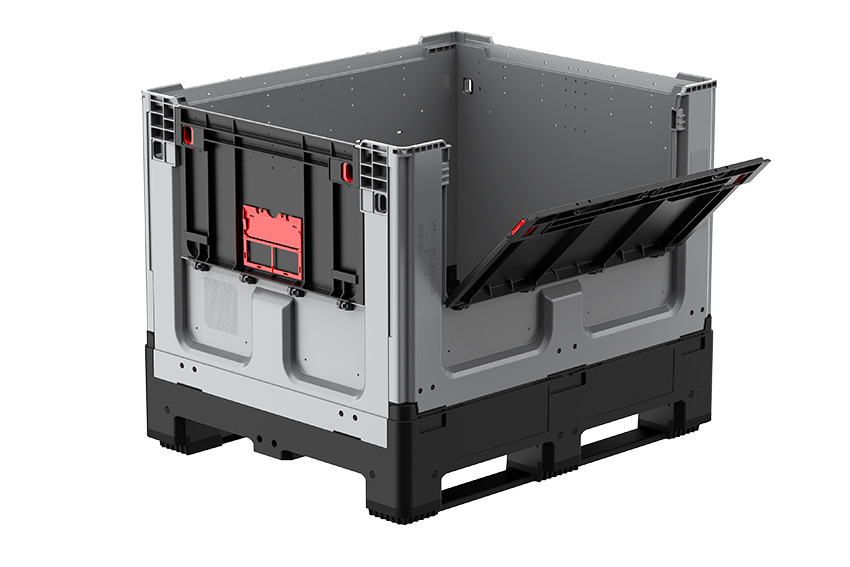 Logifold box 1200x1000x975mm - 855l - closed - 2 skids - flap door 1 short + 1 long side