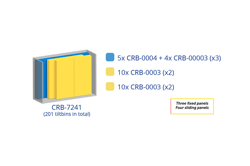 • Integrated tilting tray modules per sliding panel: 10x CRB-0003 (x4)