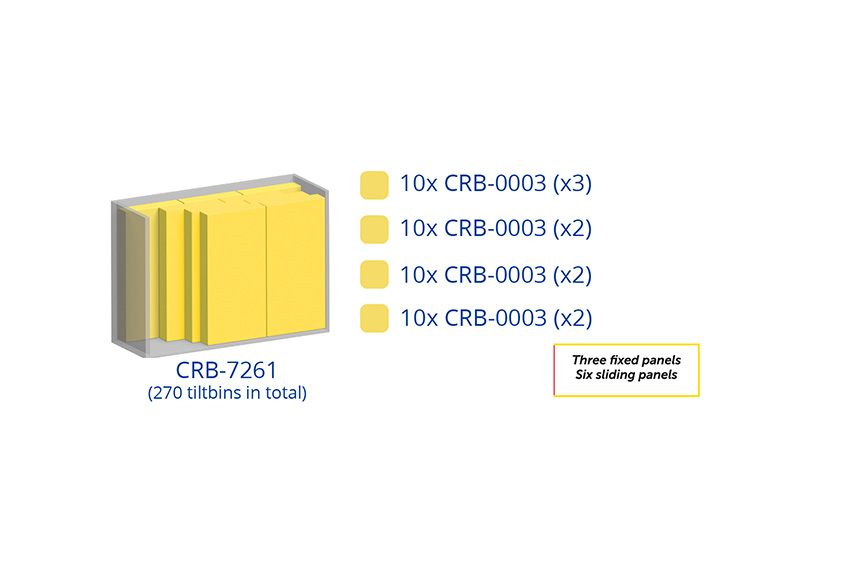 • Integrated tilting tray modules per sliding panel: 10x CRB-0003 (x6)