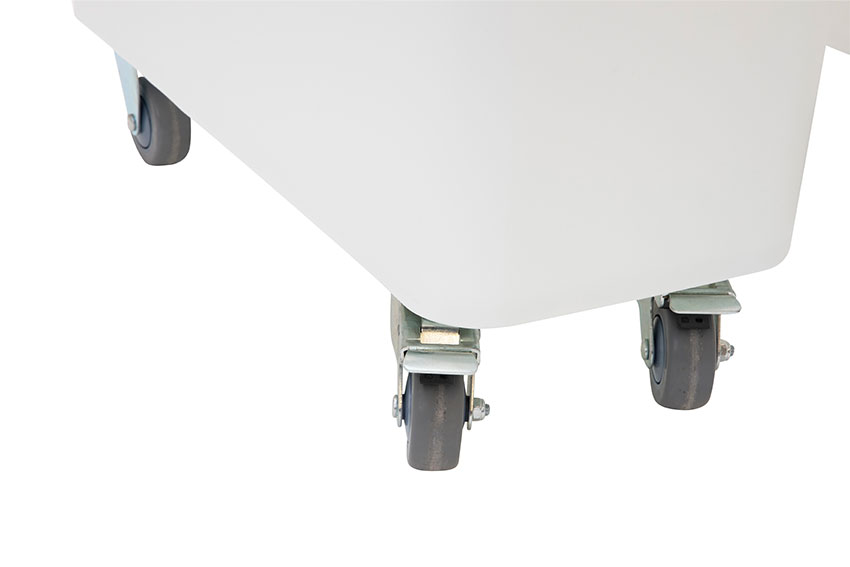 - 2 roues fixes, 2 roues pivotantes avec frein