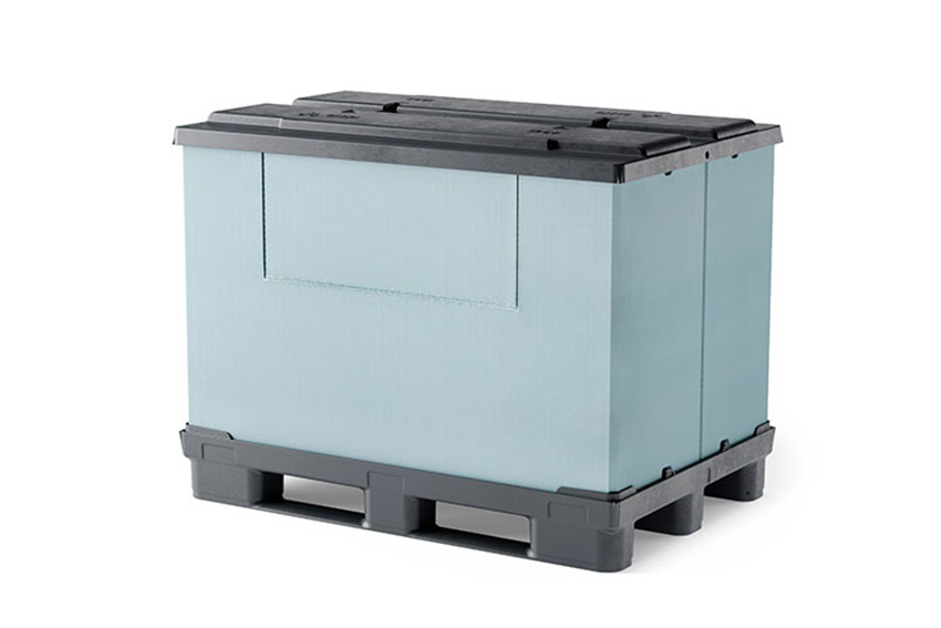 - Conteneur pliable à 6 charnières avec couvercle et palette (3 lattesarrière)