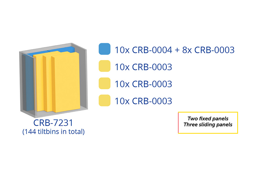 • Modules de bacs basculants intégrés par panneau coulissant : 10x CRB-0003 (x3)