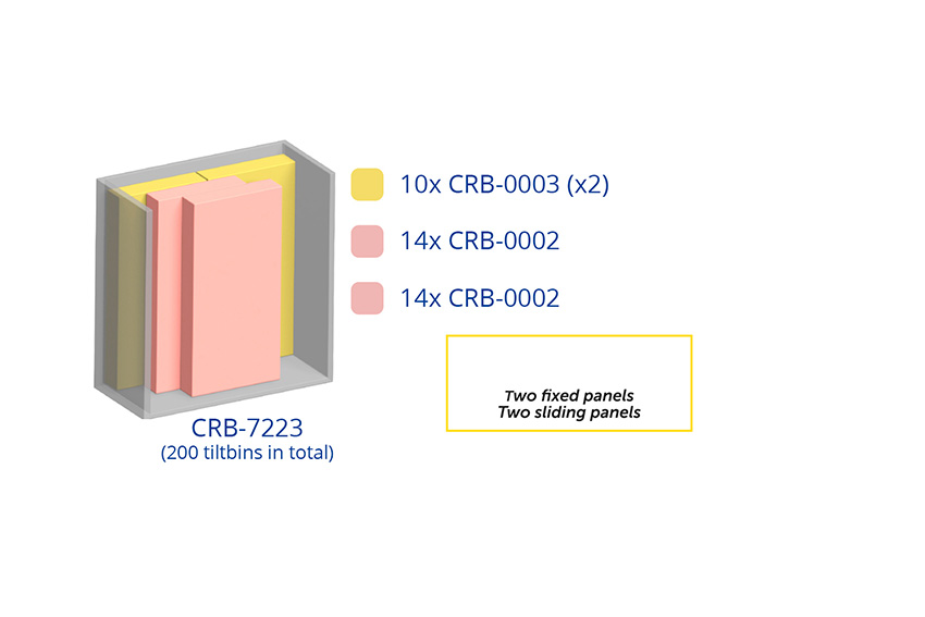 - Modules de bacs basculants intégrés par panneau coulissant : 14x CRB-0002 (x2)